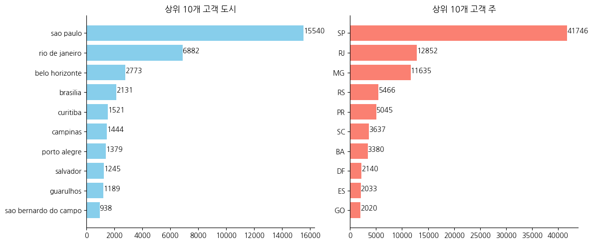 - olist 이용 고객 77%가 속한 상위 5개 주(state)기준 상위 10개 상품 카테고리가 약 63% 매출 비중을 차지한다. 즉, 전체 매출 74% 중 63%의 매출이 상위 10개 상품 카테고리에서 발생하고 있다
